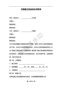 工程施工安全協(xié)議書范本