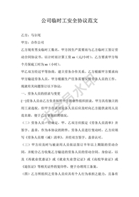 公司臨時(shí)工安全協(xié)議范文